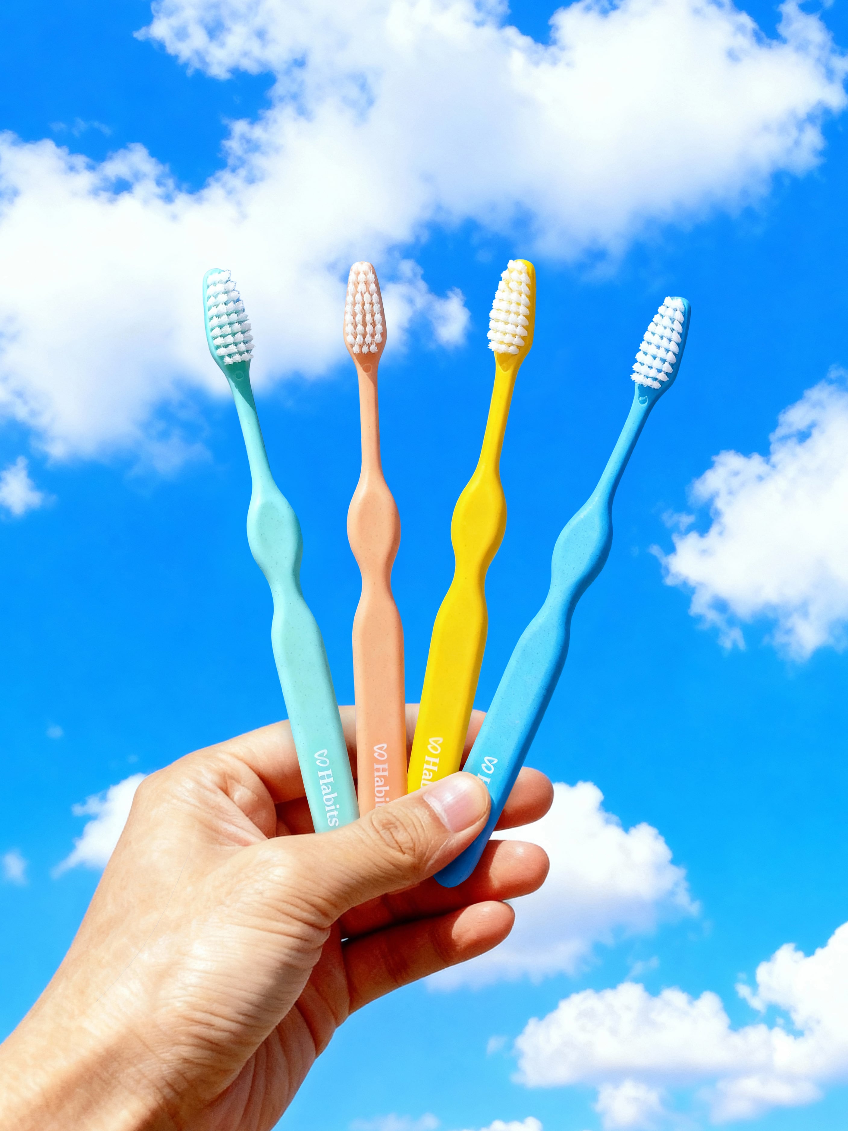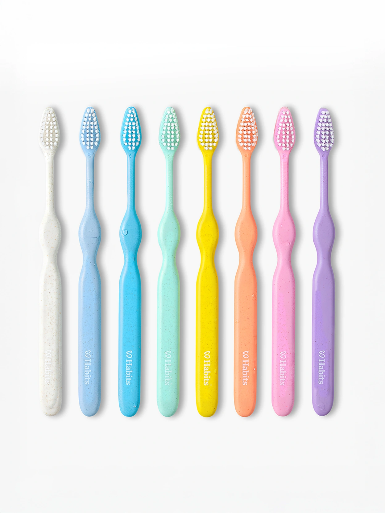Med skandinavisk design och ett diamantformat borsthuvud rengör Habits tandborstar effektivt, samtidigt som de mjuka stråna är skonsamma mot ditt tandkött. Tillverkade av växtbaserade, BPA-fria material kombinerar de stil, kvalitet och hållbarhet. En premiumborste som känns lika bra i handen som för planeten helt enkelt.