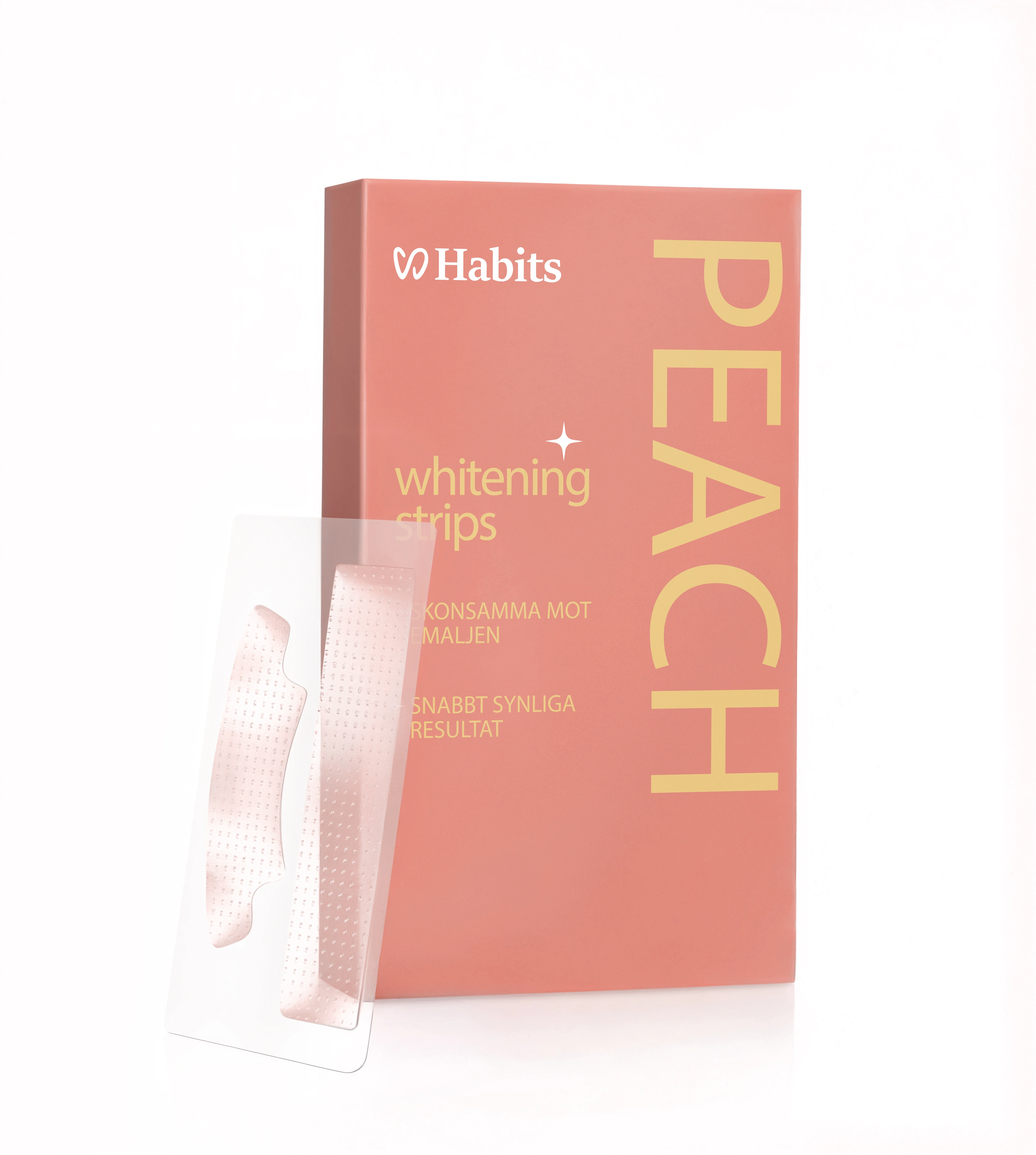 Habits Whitening Strips gör tandblekning enkel, skonsam och faktiskt njutbar. Med en mild PAP⁺-formula utan peroxid får du synbart vitare tänder utan ilningar eller skador på emaljen. Varje remsa har en fräsch smak och sitter bekvämt på plats – perfekt för dig som vill ha ett tryggt, snabbt och effektivt sätt att få ett vitare leende hemma.